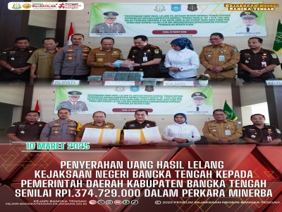 Kejari Bangka Tengah serahkan Rp13 Miliar Hasil Lelang ke Pemkab Bangka Tengah untuk pemulihan lingkungan